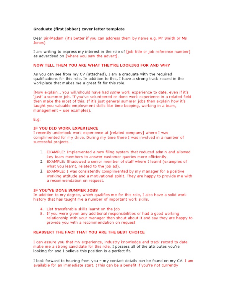 Graduate Cover Letter Template Labour Employment